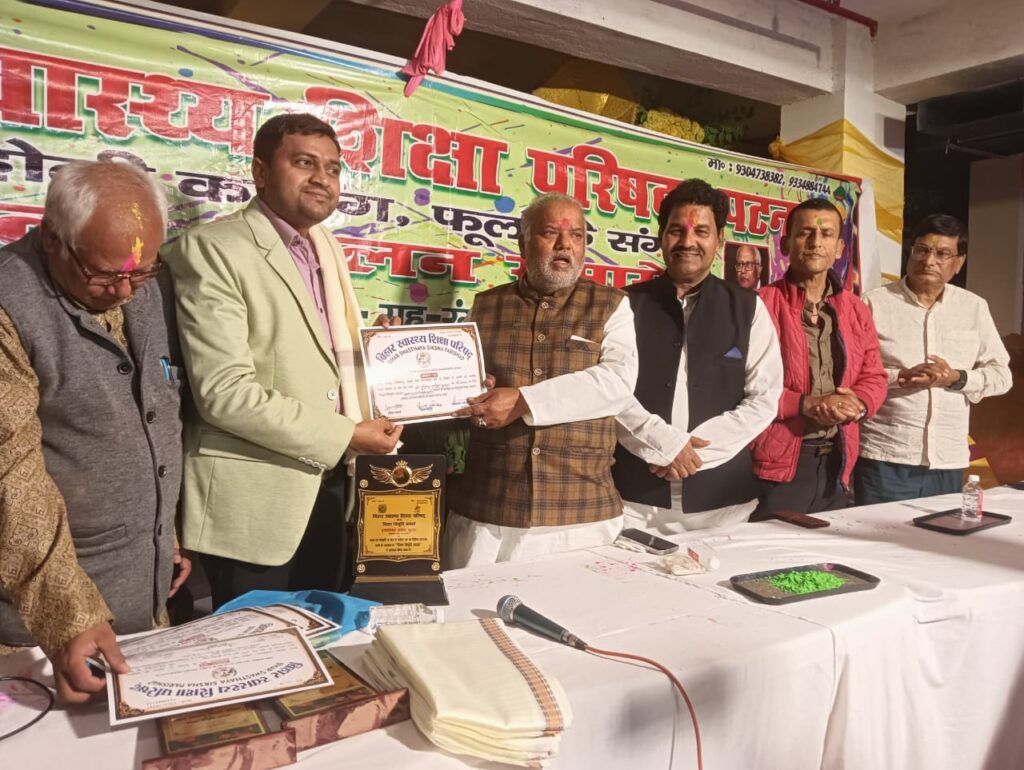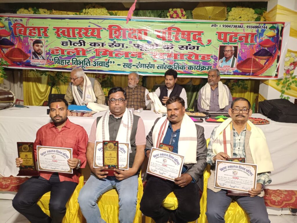 आज को भागवत नगर स्थित राजमहल होटल के प्रेक्षागृह में बिहार स्वास्थ्य एवं शिक्षा परिषद , कंकड़बाग पटना की ओर से फूलों से सराबोर रंगोत्सव के बीच आयोजित ” बिहार विभूति अवार्ड ‘ समारोह में अलग – अलग क्षेत्रों के सात विशिष्ट लोगों को सम्मानित करने किया गया।